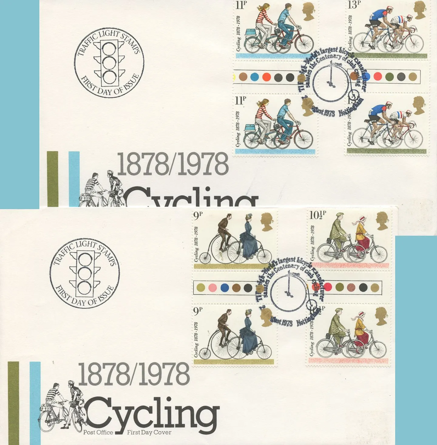 | Stamp Details: | 9p Penny Farthing 10 1/2p Touring Bicycles 11p Modern Bikes 13p Road Racers |