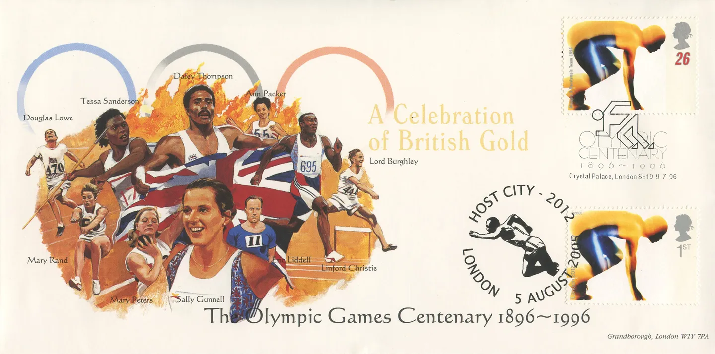 | Stamp Details: | 26p Athlete 26p Javelin 26p Basketball 26p Swimming 26p Athlete and Olympic Rings |