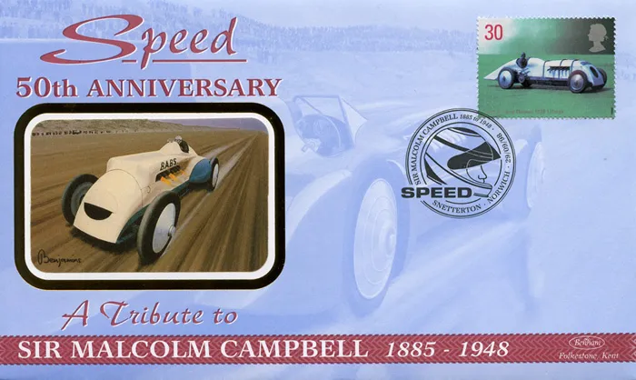 | Stamp Details: | 20p Malcolm Campbell 26p Henry Seagrave 30p Parry Thomas 43p John Cobb 63p Donald Campbell |