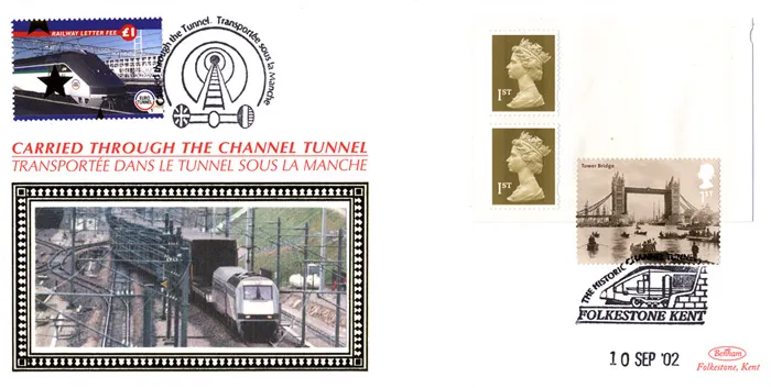 The above Royal Mail Self Adhesive: Bridges of London were issued on 10 September 2002 by Royal Mail and feature the following stamp designs: . The Historic Channel Tunnel first day cover with the Folkestone, Historic Channel Tunnel, Special Handstamp postmark has been produced by Benham and features these stamps which can make a very collectible and lovely gift.