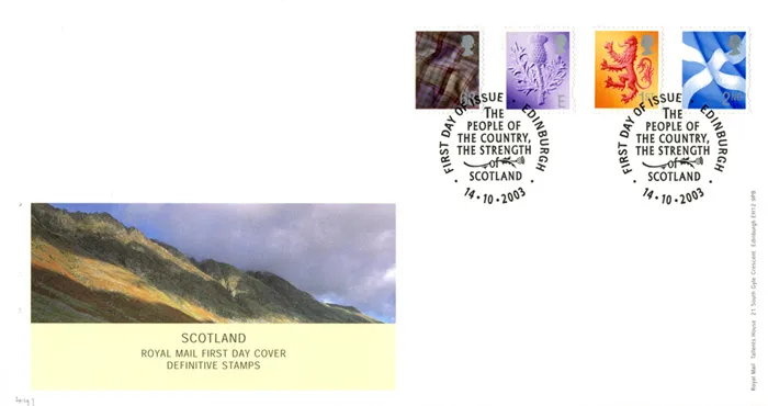 | Issue: | 14 October 2003 - Scotland (white borders) 2nd, 1st, E, 68p |