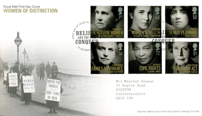 | Stamp Details: | 1st Millicent Garrett Fawcett 48p Elizabeth Garrett Anderson 50p Marie Stopes 56p Eleanor Rathbone 72p Claudia Jones 81p Barbara Castle |