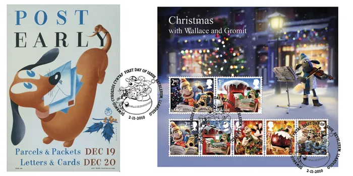 The above Royal Mail Christmas 2010: Miniature Sheet were issued on 02 November 2010 by Royal Mail and feature the following stamp designs: Wallace & Gromit: 2nd Carol Singing: 2nd Large Carol Singing; 1st Posting Christmas Cards; 1st Large Posting Christmas Cards; 60p Decorating the Christmas Tree; 97p Christmas Pudding; £1.46 Giving Presents. The Post Early for Xmas (2) first day cover with the Bethlehem, First Day of Issue - Wallace & Gromit, Special Handstamp postmark has been produced by Bradbury and features these stamps which can make a very collectible and lovely gift.