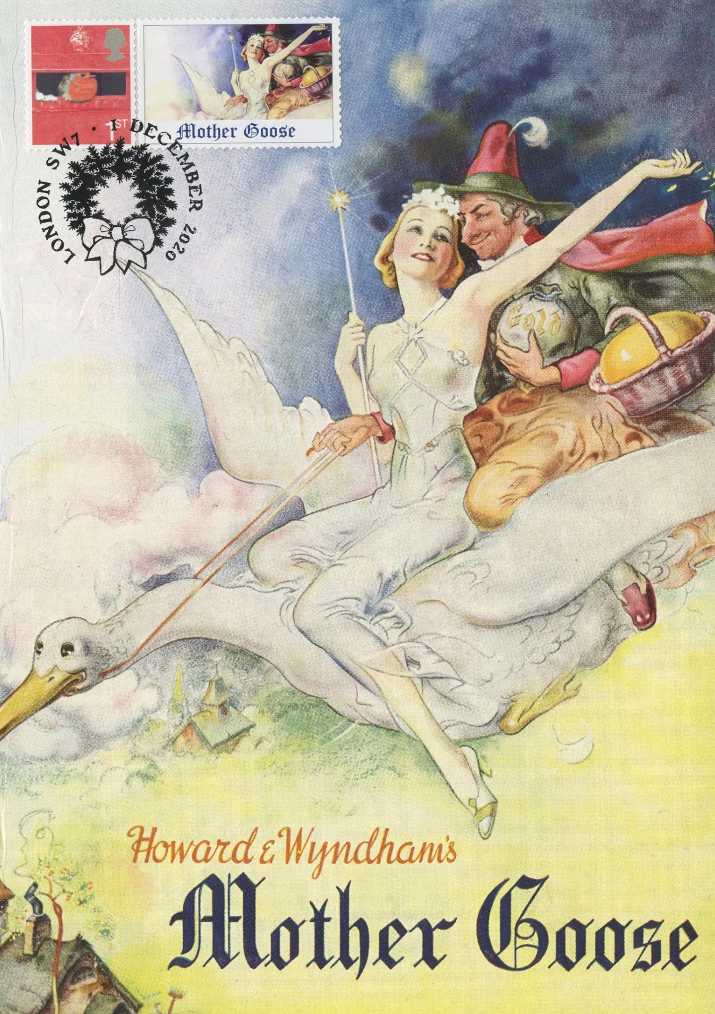 This exquisite item is from a Pantomine book published by theatre management company Howard & Wyndham. Famous for their Pantomime productions, they were founded in Glasgow in 1895 and became the largest of its type in Britain. The company continued well into the 20th century; its theatres being eventually sold in the 1960s. The prints are approximately A5 in size, i.e. approx 200mm x 130mm. I used the images on a special stamp sheet which I designed in 2008 (see stock code 27478). Each print has a stamp label with similar design and 1st Class 'robin in pillar box' postage stamp. These have then been franked with a special London postmark on 1st December 2020. THESE ARE ORIGINAL PRINTS not reproductions ONLY ONE OF EACH AVAILABLE!