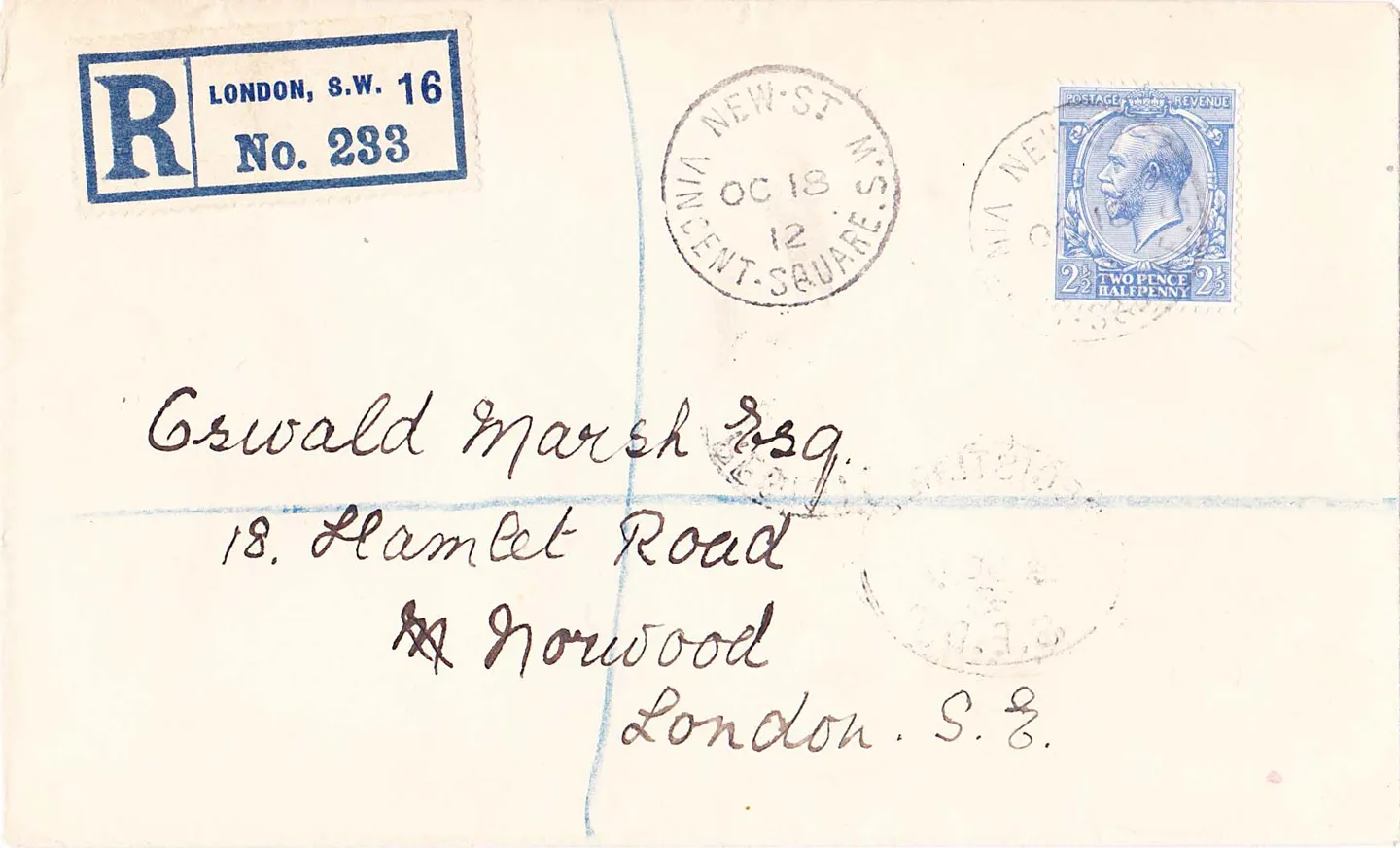 | Postmark: | London SW, Vincent Square, CDS Postmark |