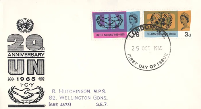 | Stamp Details: | 3d UN Emblem 1s 6d ICY Emblem |