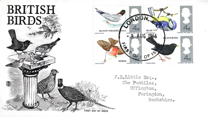 | Stamp Details: | 4d Black-headed Gull 4d Blue Tit 4d Robin 4d Blackbird |