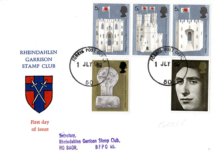 The above Royal Mail Prince of Wales Investiture were issued on 01 July 1969 by Royal Mail and feature the following stamp designs: 3 x 5d Caernarvon Castle; 9d Celtic Cross; 1s Prince Charles. The Rheindahlen Garrison Stamp Club first day cover with the Forces Post Office, CDS Postmark postmark has been produced by Forces and features these stamps which can make a very collectible and lovely gift.