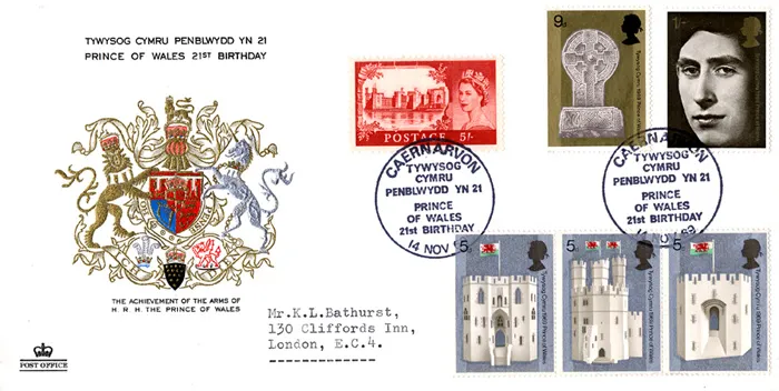 | Postmark: | Caernarvon, Prince of Wales 21st Birthday, Special Handstamp |