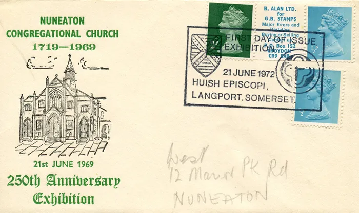 | Postmark: | Huish Episcopi, First Day of Issue Exhibition, Special Handstamp |