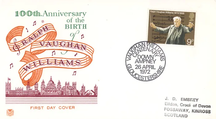 | Postmark: | Down Ampney, Vaughan Williams, Special Handstamp |