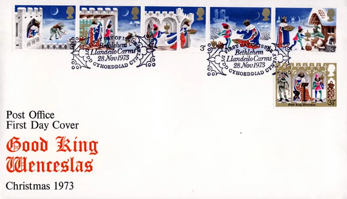 | Stamp Details: | 5 x 3p 'Good King Wenceslas' 3 1/2p 'Good King Wenceslas' |