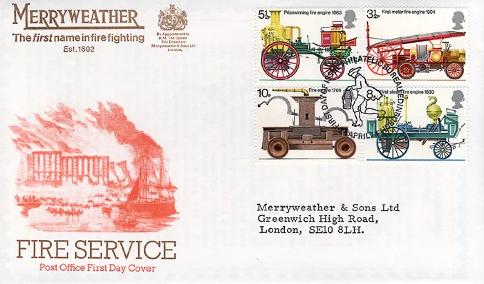 | Stamp Details: | 3 1/2p First motor fire-engine 5 1/2p Prize-winning fire-engine 8p First steam fire-engine 10p Fire-Engine 1766 |