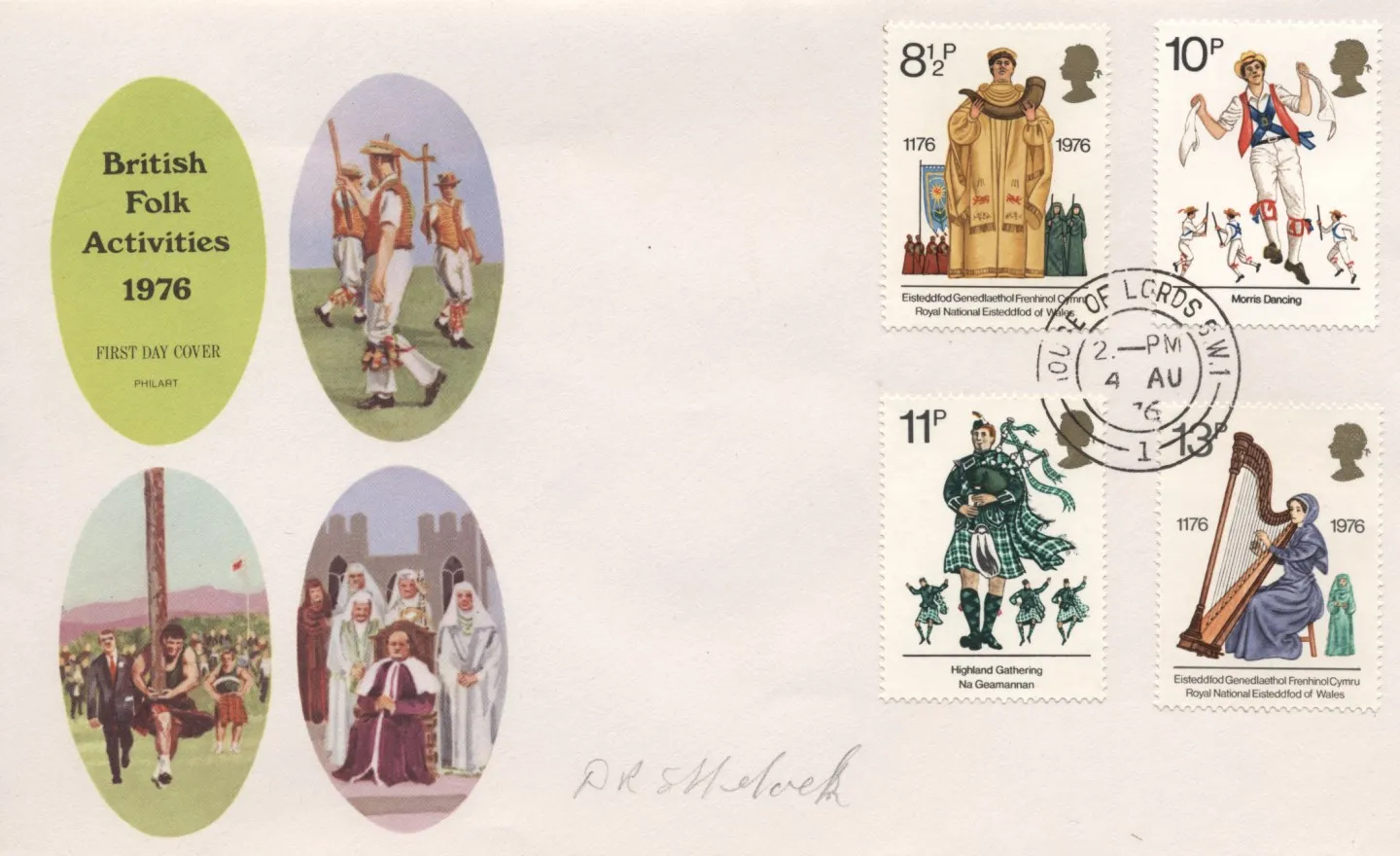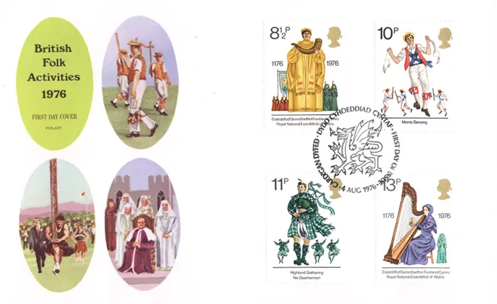 | Stamp Details: | 8 1/2p Arch Druid 10p Morris Dancers 11p Piper 13p Harpist |