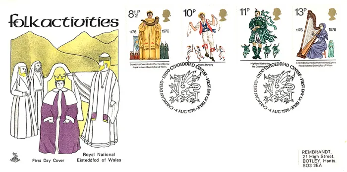 | Stamp Details: | 8 1/2p Arch Druid 10p Morris Dancers 11p Piper 13p Harpist |