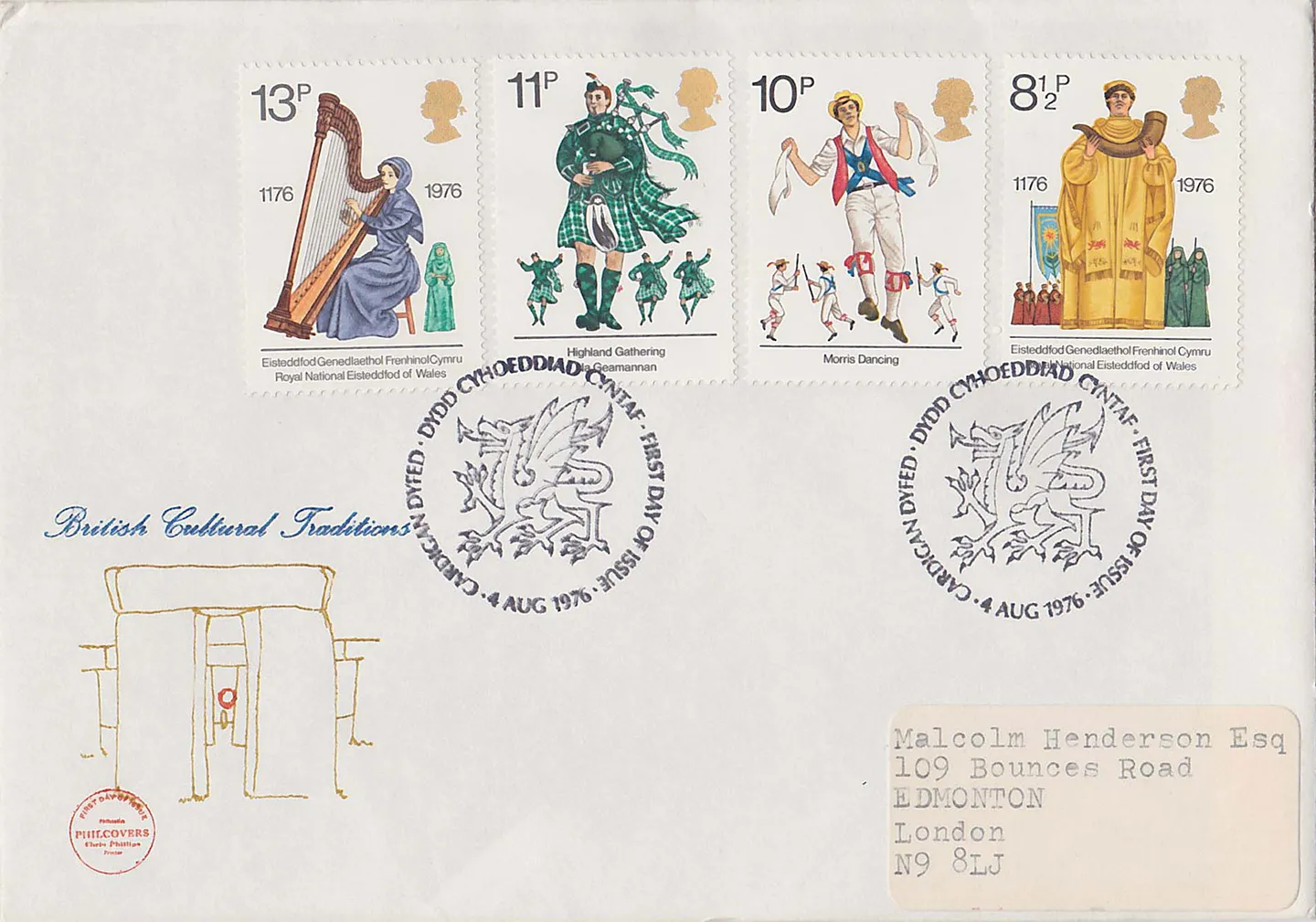 | Stamp Details: | 8 1/2p Arch Druid 10p Morris Dancers 11p Piper 13p Harpist |