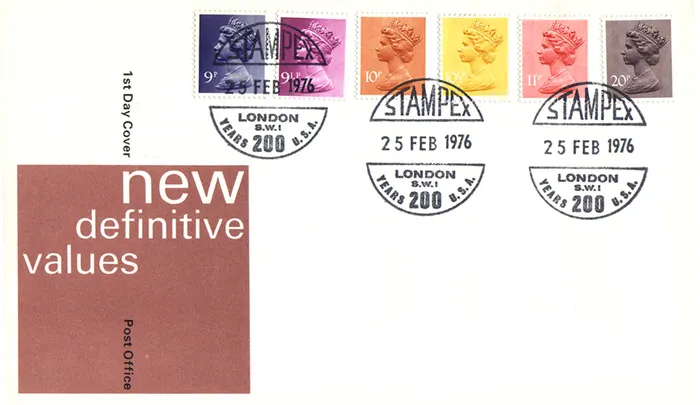 | Issue: | 25 February 1976 - Machins: 9p, 9 1/2p, 10p, 10 1/2p, 11p 20p |