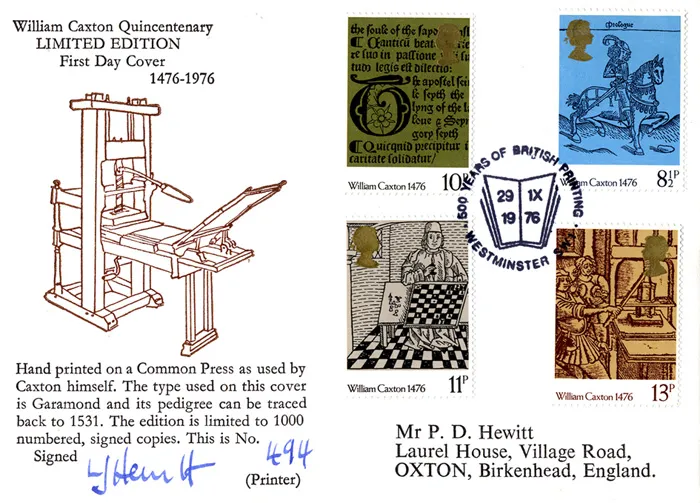 | Stamp Details: | 8 1/2p Canterbury Tales 10p Type-faces 11p Game of Chess 13p Printing Press |
