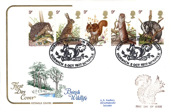 | Stamp Details: | 9p Hedgehog 9p Hare 9p Red Squirrel 9p Otter 9p Badger |