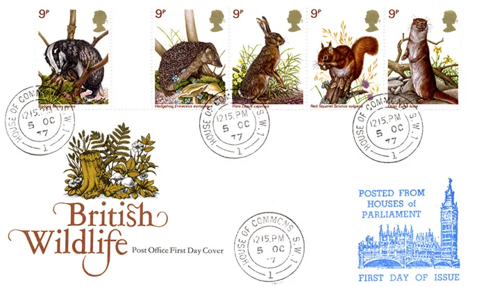 | Stamp Details: | 9p Hedgehog 9p Hare 9p Red Squirrel 9p Otter 9p Badger |