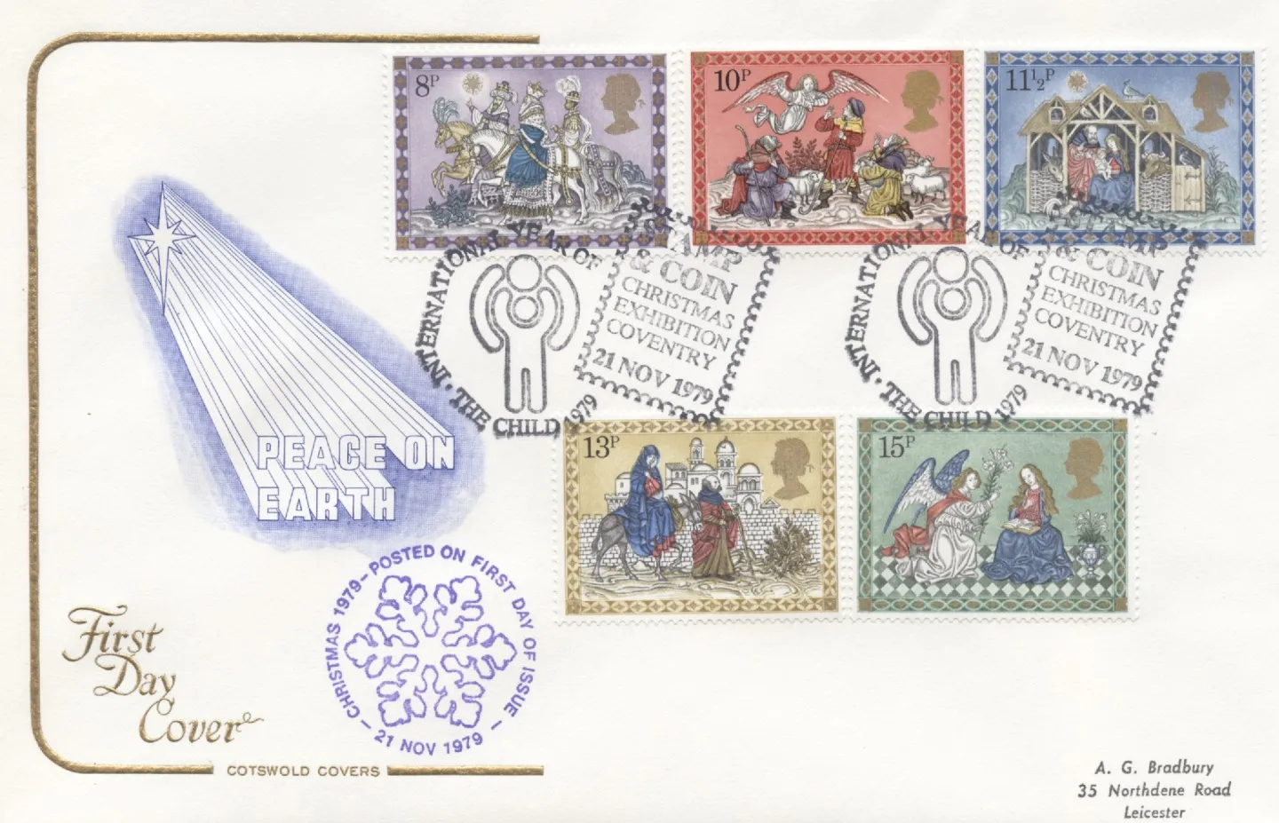 | Postmark: | London, Blackpool, Coventry, Tenterden, Cheriton, Folkestone, Bethlehem, West Glamorgan, War Cry (Salvation Army), Special Handstamp, After the Ball, Special Handstamp, Year of the Child, Special Handstamp, Kent & East Sussex Railway, Special Handstamp, Romney Hythe Dymchurch Railway, Special Handstamp, Special Handstamp, Swansea Rotary Club, Special Handstamp |