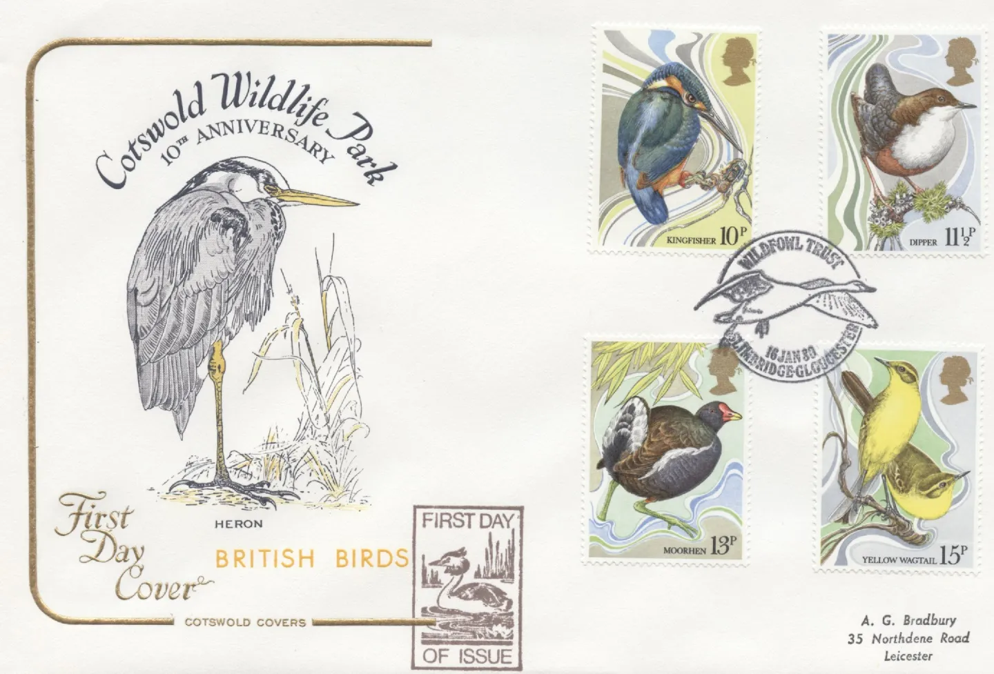 | Stamp Details: | 10p Kingfisher 11 1/2p Dipper 13p Moorhen 15p Yellow Wagtail |