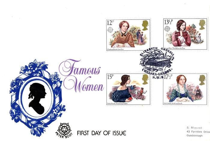 | Stamp Details: | 12p Charlotte Bronte 13 1/2p George Eliot 15p Emily Bronte 17 1/2p Mrs Gaskell |