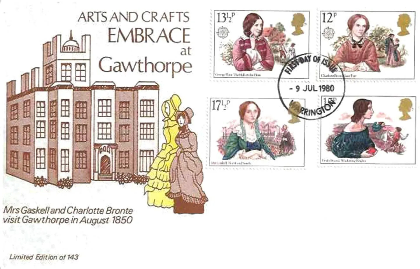 | Stamp Details: | 12p Charlotte Bronte 13 1/2p George Eliot 15p Emily Bronte 17 1/2p Mrs Gaskell |