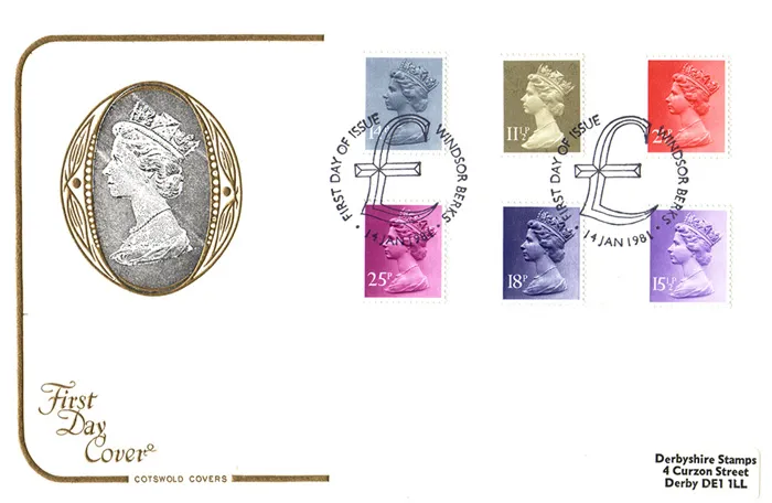 | Issue: | 14 January 1981 - Machins: 2 1/2p, 11 1/2p, 14p, 15 1/2p, 18p, 25p |