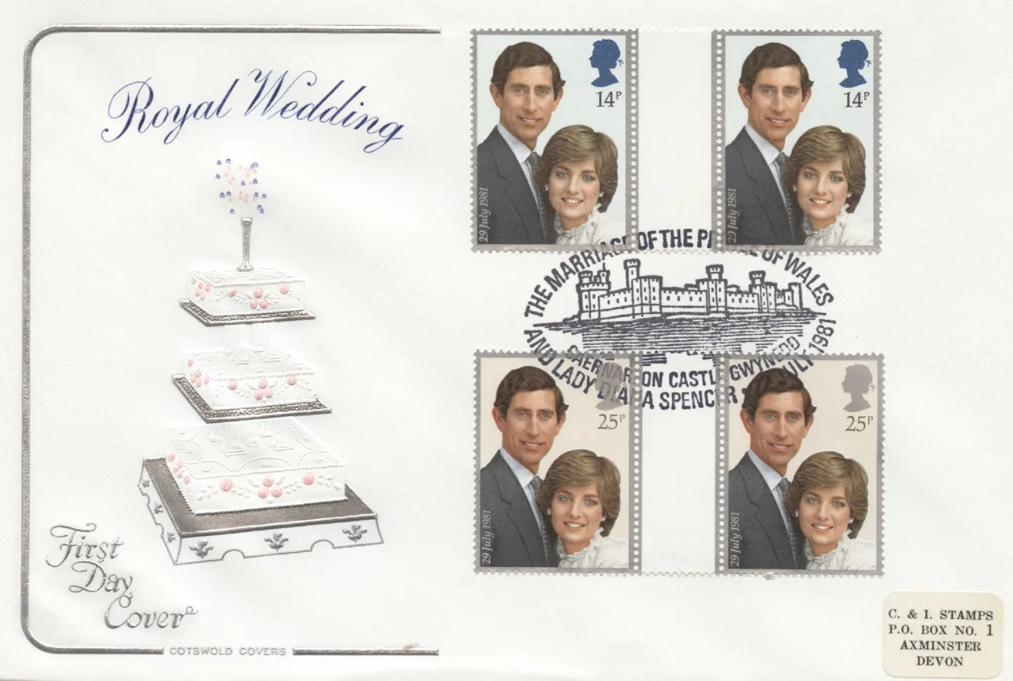 | Postmark: | Althorp, St. Paul's, Caernarvon, Southport, Special Handstamp, changeable date, Special Handstamp, Castle, Special Handstamp, FDI Postmark, Royal Wedding Day Toast, Special Handstamp, Front of Cathedral, Special Handstamp |