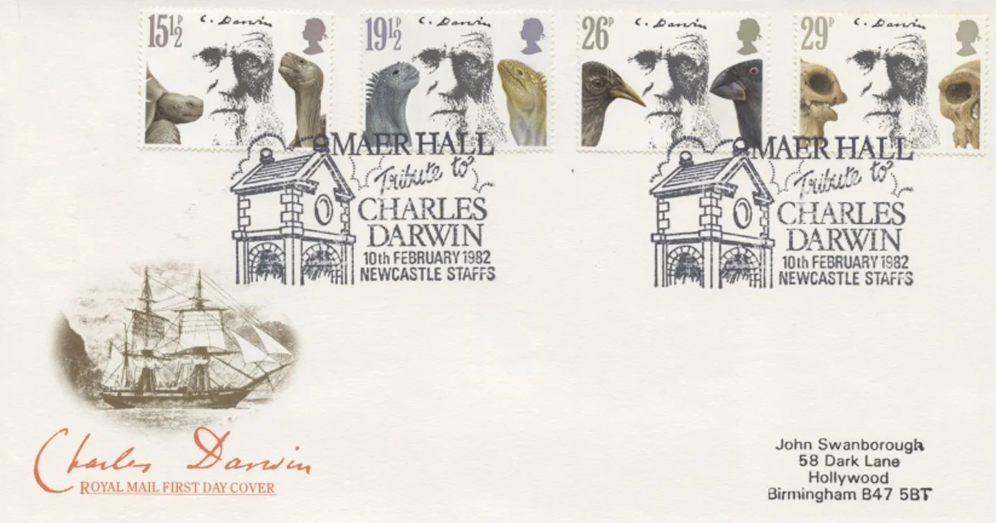 | Postmark: | Plymouth, Westminster Abbey, Shrewsbury, Cambridge, Philatelic Bureau, Newcastle Staffs, Sandy, Special Handstamp, Beagle and Giant Tortoise, Special Handstamp, First Day of Issue - Giant Tortoise, Special Handstamp, Penguin, Special Handstamp, First Day of Issue - Lizard, Special Handstamp, Maer Hall, Special Handstamp, RSPB Protects Wild Birds, Special Handstamp, Lizard, Special Handstamp |