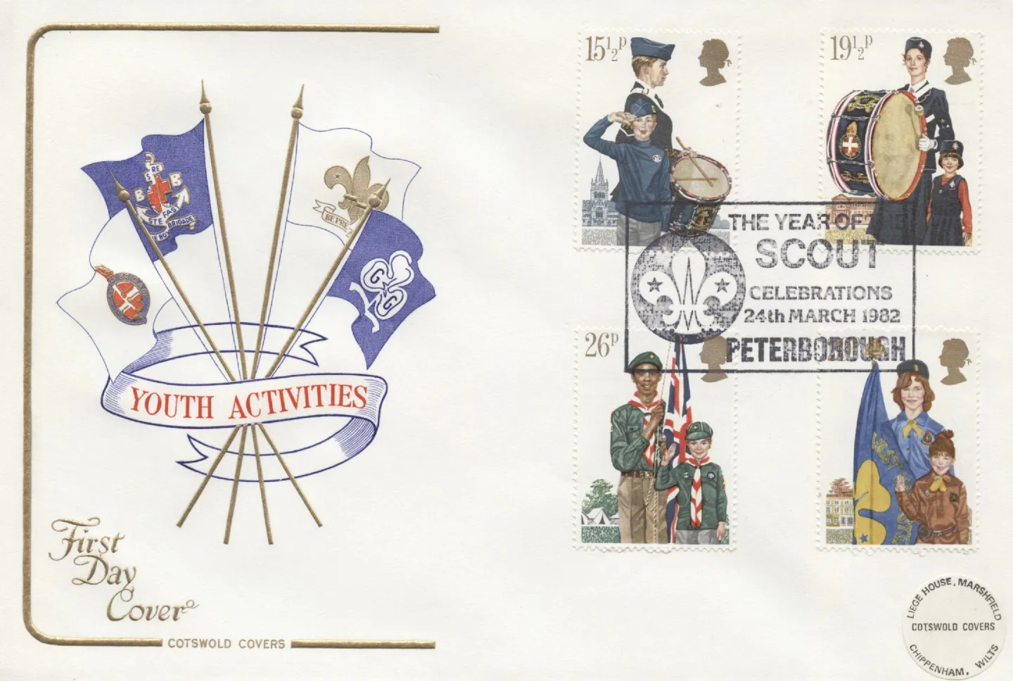 | Stamp Details: | 15 1/2p Boys' Brigade 19 1/2p Girls' Brigade 26p Scouts 29p Girl Guides |