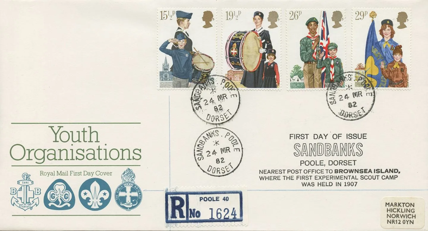 | Stamp Details: | 15 1/2p Boys' Brigade 19 1/2p Girls' Brigade 26p Scouts 29p Girl Guides |