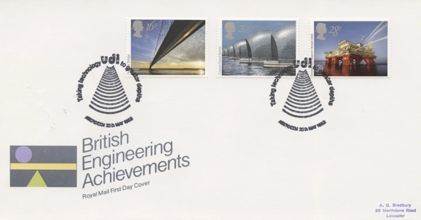 | Stamp Details: | 16p Humber Bridge 20 1/2p Thames Barrier 28p Energy Support Vessel - Iolair |