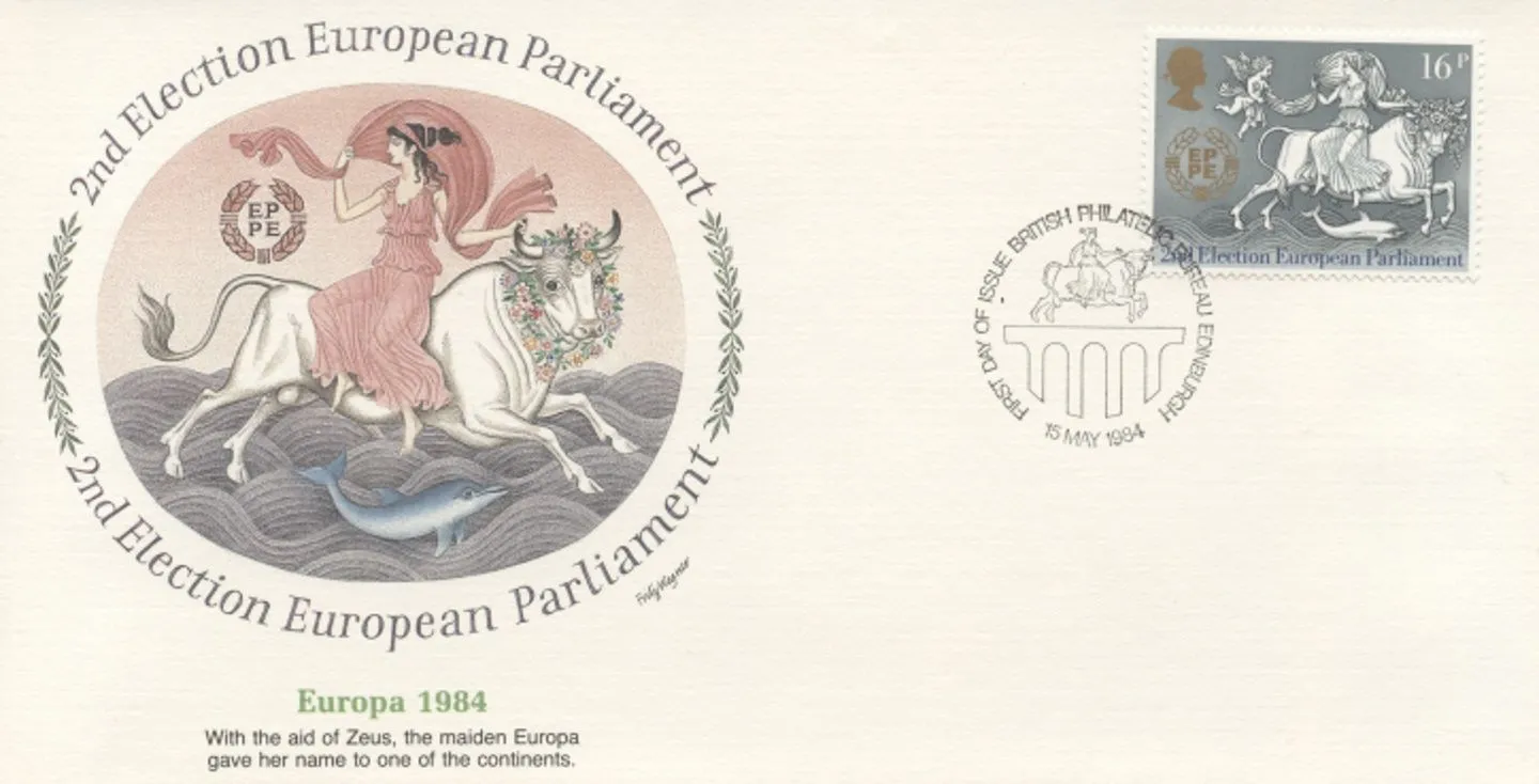 | Stamp Details: | 2 x 16p, 2 x 20 1/2p CEPT 25th Anniversary logo and the Abduction of Europa |