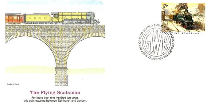 | Stamp Details: | 17p Flying Scotsman 22p Golden Arrow 29p Cheltenham Flyer 31p Royal Scot 34p Cornish Riviera |
