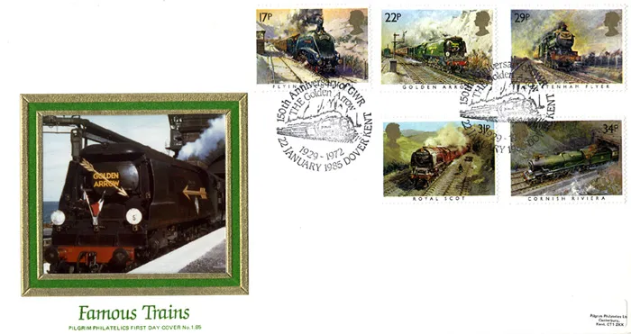 | Stamp Details: | 17p Flying Scotsman 22p Golden Arrow 29p Cheltenham Flyer 31p Royal Scot 34p Cornish Riviera |
