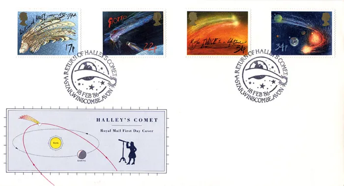 | Stamp Details: | 17p Halley 27p Giotto 31p Twice in a Lifetime 34p Comet |