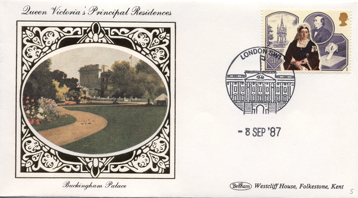 The above Royal Mail Victorian Britain were issued on 08 September 1987 by Royal Mail and feature the following stamp designs: 18p Crystal Palace, Monarch of the Glen and Grace Darling; 22p Great Eastern, Mrs Beeton and Prince Albert; 31p Albert Memorial, Ballot Box and Disraeli; 34p Diamond Jubilee, Relief of Mafeking and Morse Code. The Buckingham Palace first day cover with the London SW1, Special Handstamp postmark has been produced by Benham and features these stamps which can make a very collectible and lovely gift.