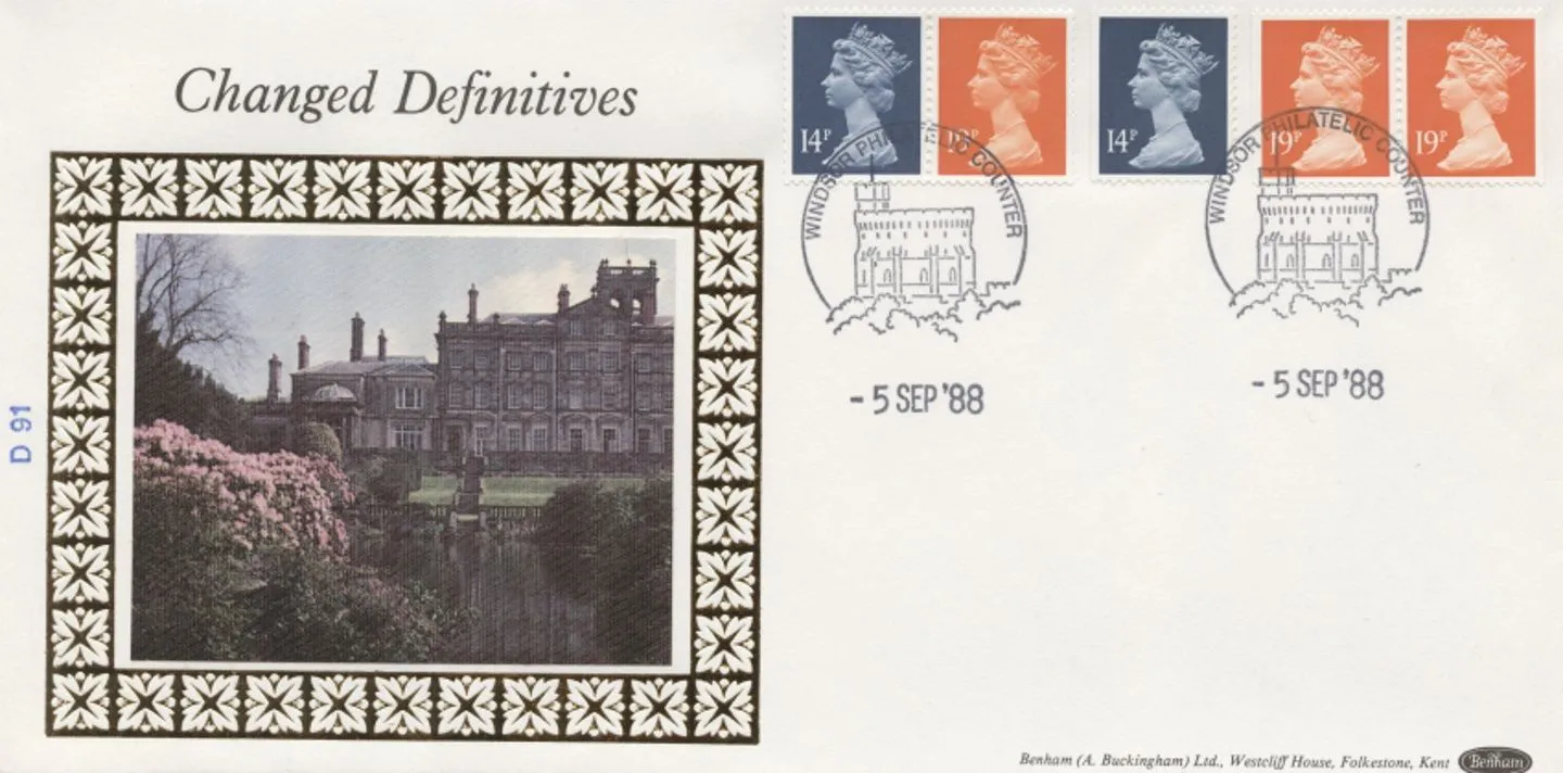 The above Royal Mail Vending: New Design: 50p G & Sullivan 1 (Yeoman) were issued on 05 September 1988 by Royal Mail and feature the following stamp designs: . The Changed Definitives first day cover with the Windsor, Special Handstamp postmark has been produced by Benham and features these stamps which can make a very collectible and lovely gift.