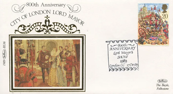 The above Royal Mail Lord Mayor's Show were issued on 17 October 1989 by Royal Mail and feature the following stamp designs: 20p Royal Mail Coach; 20p Blues and Royals; 20p Lord Mayor's Coach; 20p St Paul's Cathedral; 20p Drum Horse. The Elizabeth I first day cover with the London EC, Banner, Special Handstamp postmark has been produced by Benham and features these stamps which can make a very collectible and lovely gift.