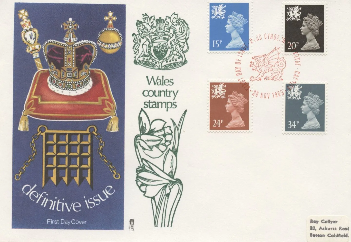 | Issue: | 28 November 1989 - Wales 15p, 20p, 24p, 34p |