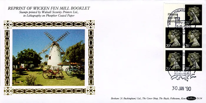 The above Royal Mail Vending: Penny Black Anniversary: £1 Mills 1 (Wicken Fen) were issued on 30 January 1990 by Royal Mail and feature the following stamp designs: . The Windmill first day cover with the Windsor, The Castle, Special Handstamp postmark has been produced by Benham and features these stamps which can make a very collectible and lovely gift.
