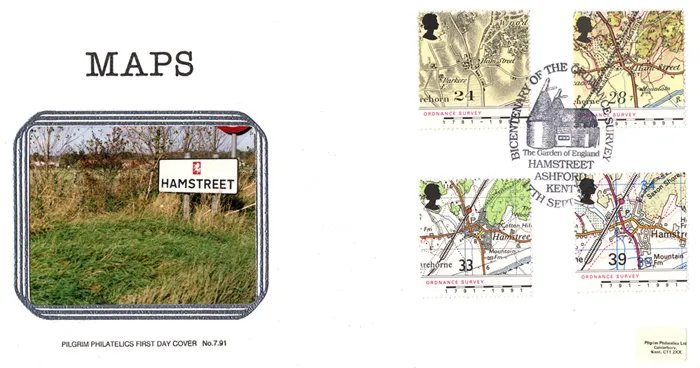 | Stamp Details: | 24p Hamstreet map of 1816 28p Hamstreet map of 1906 33p Hamstreet map of 1959 39p Hamstreet map of 1991 |