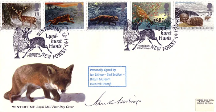 | Postmark: | Lyndhurst, Owlsmoor, Stoke on Trent, Coventry, Sheepwash, Newdeer Turriff, Harehills, Harefield, Old Deer, Foxhole, Deer Park, Fox Lane, Sheepy, Winter Hey, Winterbourne, Nettleham, Brecon, Glenbuck, Philatelic Bureau, Chester, Bath, London EC, Sittingbourne, Foxearth, Freezywater, Frosterley, Coldridge, Whitehaven, House of Lords, New Forest, Special Handstamp, Wintertime, Special Handstamp, Pawprints Appeal, Slogan Postmark, Please Control Your Dog, Slogan Postmark, CDS Postmark, HQ for the Royal Society for Nature Conservation, CDS Postmark, 39p depicts sheep grazing in the Brecon area, CDS Postmark, Monarch of the Glen, Special Handstamp, First Day of Issue - Redwing, Special Handstamp, First Day of Issue - Mountains, Special Handstamp, Ram - British Wintertime, Special Handstamp, Cathedral 9th Century, Slogan Postmark, The Heritage City that Welcomes Business, Slogan Postmark, Wild About Animals, Special Handstamp, New Postbus, Special Handstamp, Fox, Special Handstamp, Advertising - This space could reach Millions, Slogan Postmark |