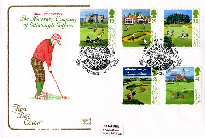 | Postmark: | Muirfield, Troon, World's Oldest Golf Club, Special Handstamp, 250 Years of Golf, Special Handstamp |