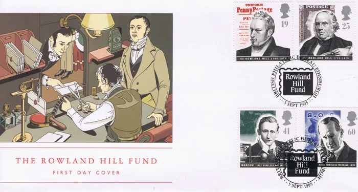 | Stamp Details: | 19p Rowland Hill and Penny Postage 25p Rowland Hill and The Penny Black 41p Marconi with Early Wireless 60p Marconi and Sinking of Titanic S.O.S. |