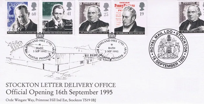 | Stamp Details: | 19p Rowland Hill and Penny Postage 25p Rowland Hill and The Penny Black 41p Marconi with Early Wireless 60p Marconi and Sinking of Titanic S.O.S. |