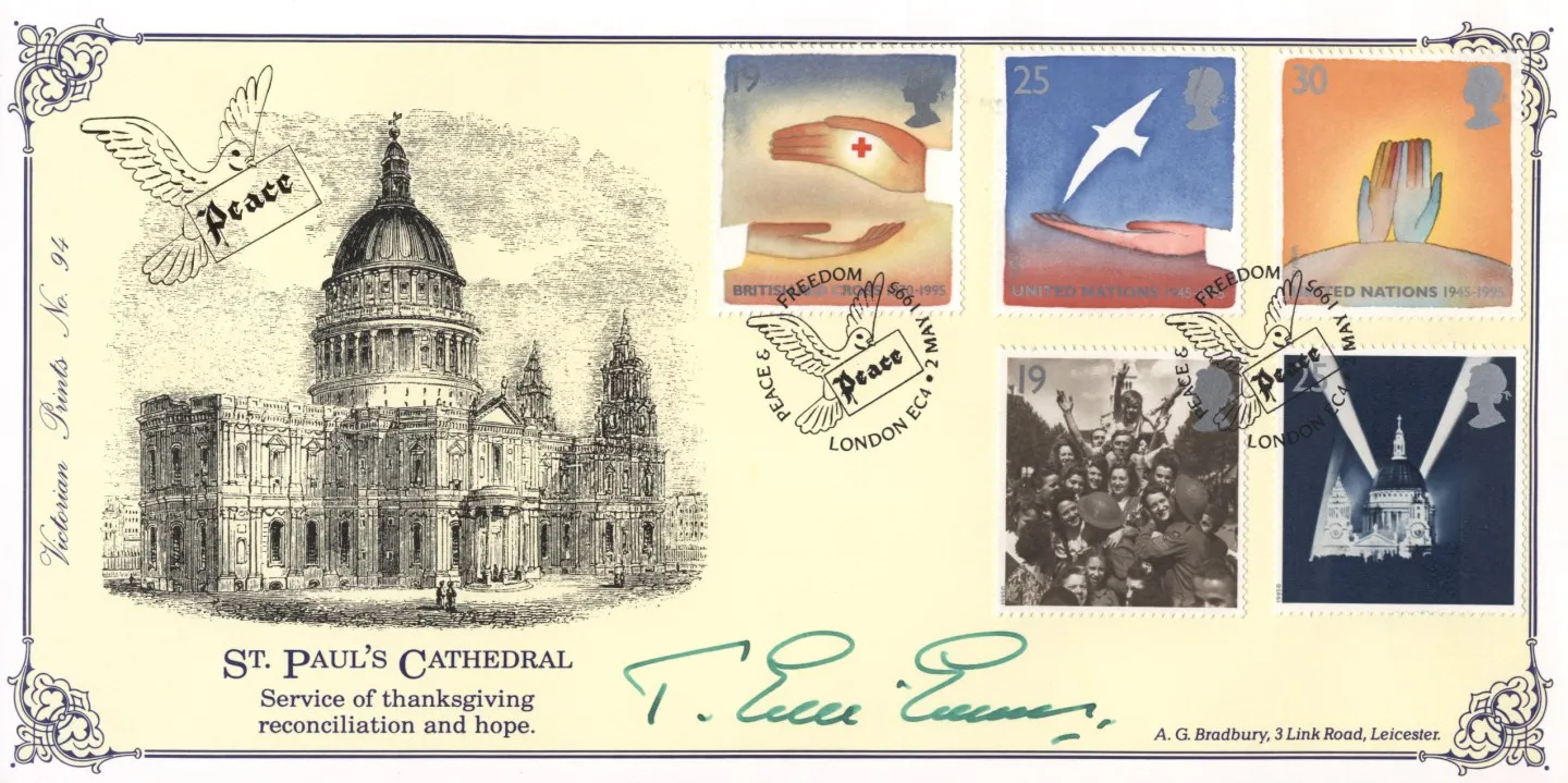 | Postmark: | London, St. Paul's, Peace & Freedom - Dove, Special Handstamp, CDS Postmark |