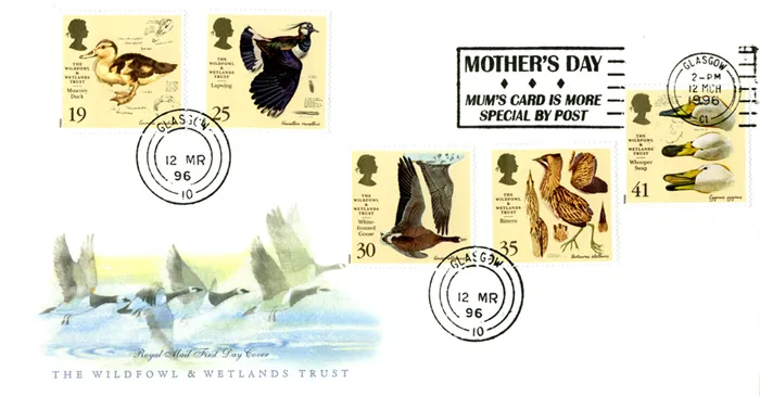 | Stamp Details: | 19p Muscovy Duckling 25p Lapwing 30p Goose 35p Bittern 41p Swan |